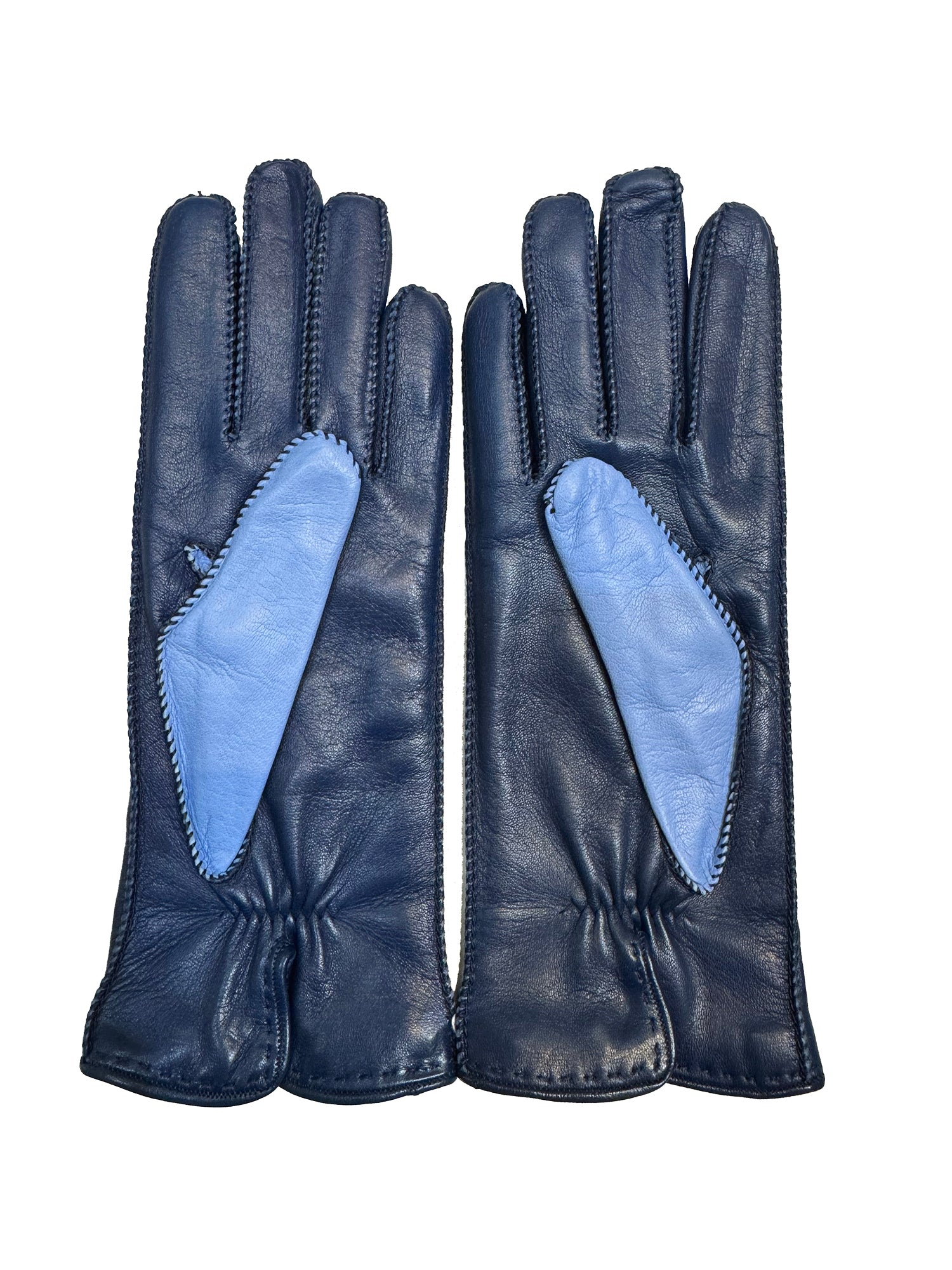 Crafted from buttery Italian lambskin and lined in ultra-soft cashmere, these gloves bring modern refinement to cold-weather dressing. The smooth leather exterior molds effortlessly to the hand, while the contrast thumb panel adds a subtle, sculptural pop of color that feels both playful and sophisticated.