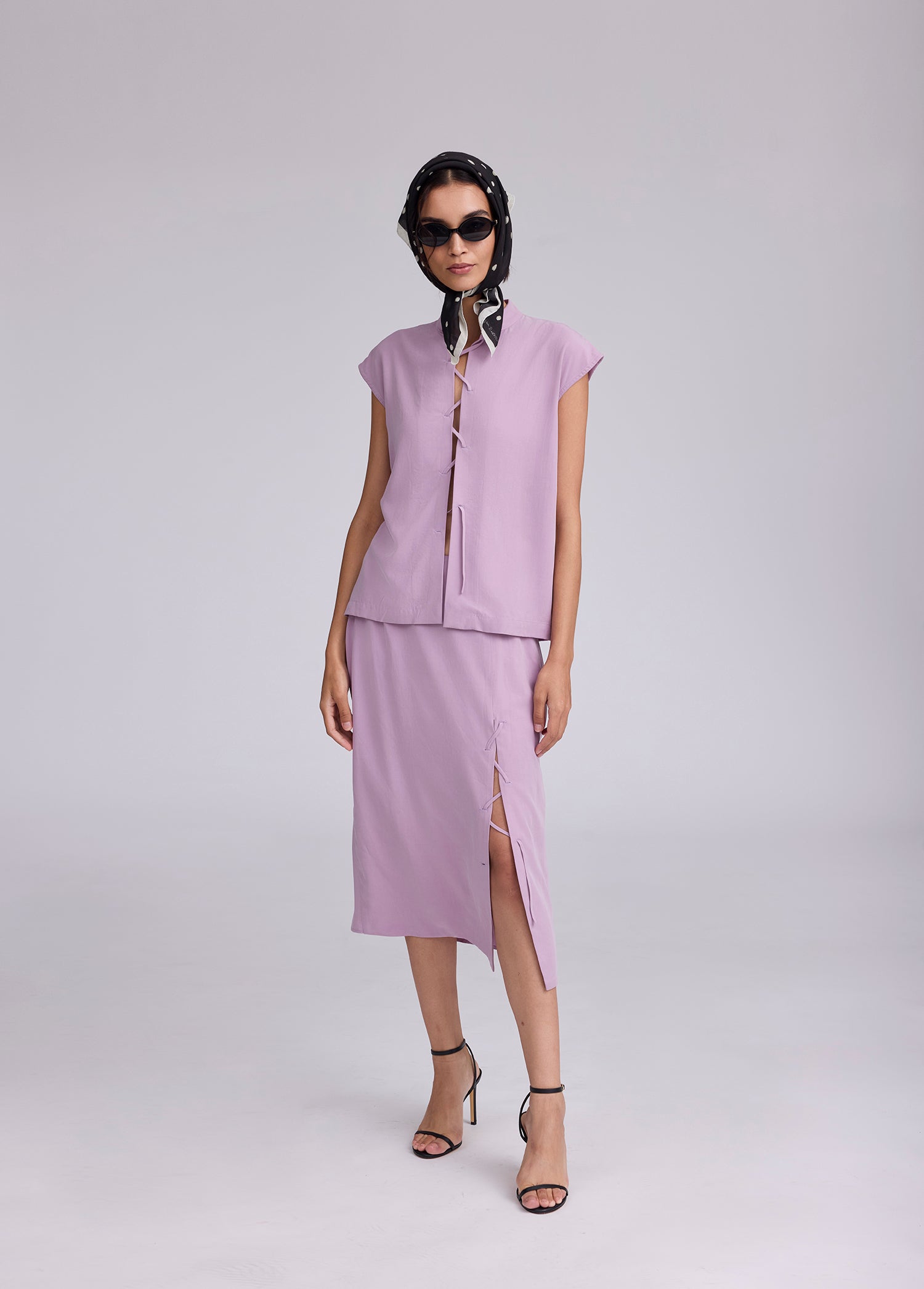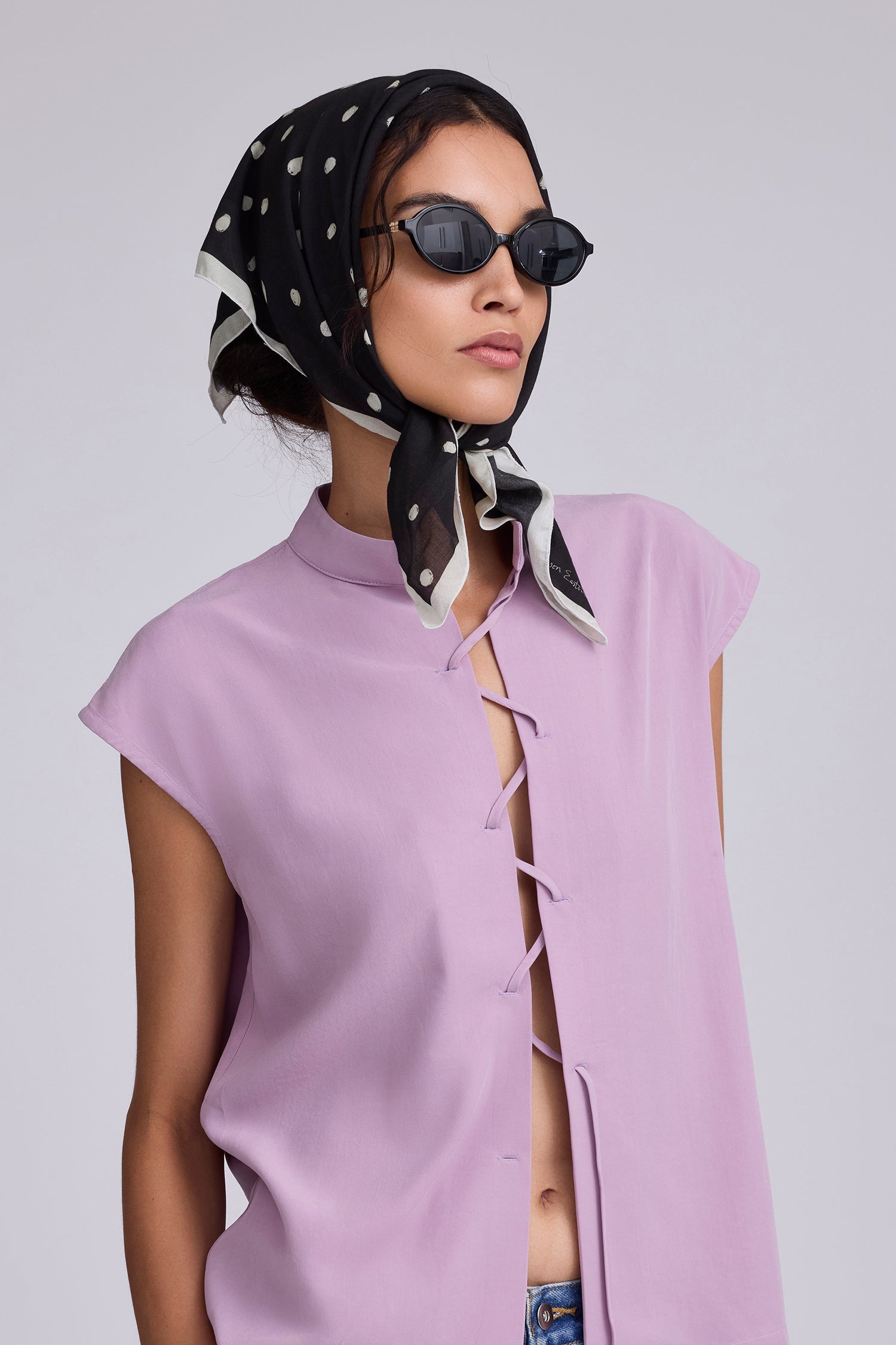 Minimalist with a twist. The Rocky Top is crafted from soft, breathable modal—an eco-friendly fabric known for its silky feel and elegant drape. Featuring a mandarin collar and distinctive loop-front closures, this sleeveless silhouette adds subtle structure while maintaining a relaxed flow. Pairs effortlessly with denim or tailoring for a clean, elevated look.